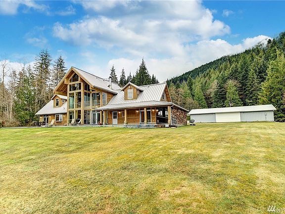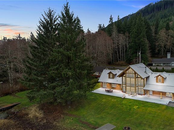 This is Paradise! Tranquil living on 159' of no bank Lake Cavanaugh waterfront. 2 story home loaded w/ distinct PNW character & lavish use of natural materials. Living/dining area w/exposed beams, tile floors & woven stone fireplace. Chef's kitchen w/slab granite counters, & top of the line appliances. Amazing mountain and/or lake views from every window! Private dock, firepit, detached 5 car shop. This home is perfect for entertaining with enough space to enjoy all that lake life has to offer!