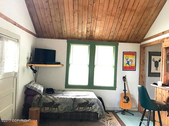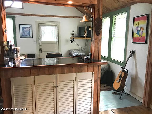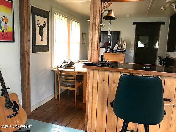 Adorable Moose Pass Cottage. 2 Bedrooms & 1 Bathroom. Updated with woodstove, charming kitchen, bar top seating, dining area, full bathroom, storage and laundry area and two nice size bedrooms. This lot also has a beautiful grassy yard with a fire pit, storage and bench seat. New diesel Toyo in 2019!!