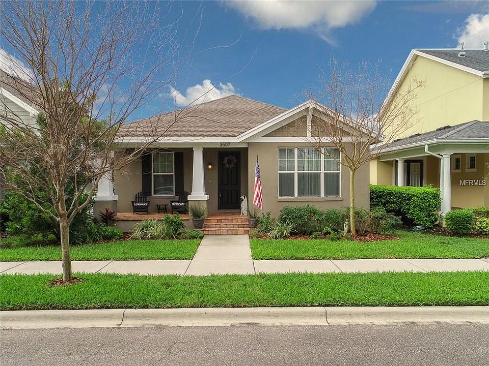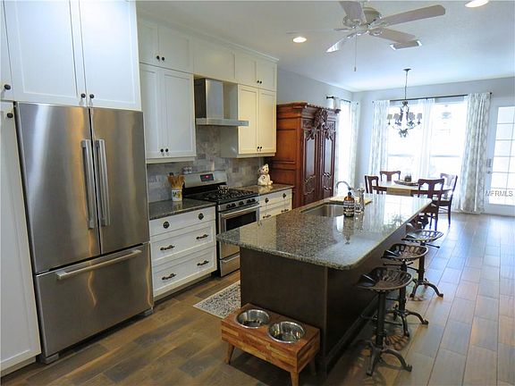 GORGEOUS! Looks like it is Fresh out of a Magazine! Cute and Cozy 3 Bedroom, 2 Bath Home in Longleaf! This home features large Great Room plan with beautiful Wood Look Tile throughout. Kitchen is Uniquely Designed with White Wood Cabinets and a Dark Maple Island adorned with Granite Countertops, Subway Tile Backsplash, Stainless Bosch Appliances with gas Range, Quaint Coffee/Wine Bar with Wine Cooler and Large Breakfast Nook overlooking the Private Lanai. Utility Room off the kitchen is perfectly finished with a Sliding Barn Door from a 250 Year old Tennessee Barn. Spacious Master Bedroom features His and Her Walk in Closets and En Suite Bath with Walk in Shower & Carrera Marble Countertops. If this home doesn't seem perfect enough, wait until you step out onto the Back Lanai. Lanai features a Large Seating Area perfect for Entertaining and a Gorgeous Gas Fireplace. Every detail has been thought of, right down to the types of plants in the backyard which attracts different species of Butterflies. Fenced in Yard with a Dog Run make this the perfect spot for Privacy and still have room for Fido to run and Play. Longleaf is Neo-Traditional Neighborhood with Many Amenities. Quaint Downtown with many shops and Restaurants, Town Hall, Parks, Biking Trail, Tennis, Volleyball and Basketball Courts, Baseball Diamond, Community Pool and so much more. Longleaf is in a Prime Location centrally located to Shopping, Restaurants, Hospital, Churches and just a few minutes to the Expressway for an easy Commute to Tampa.