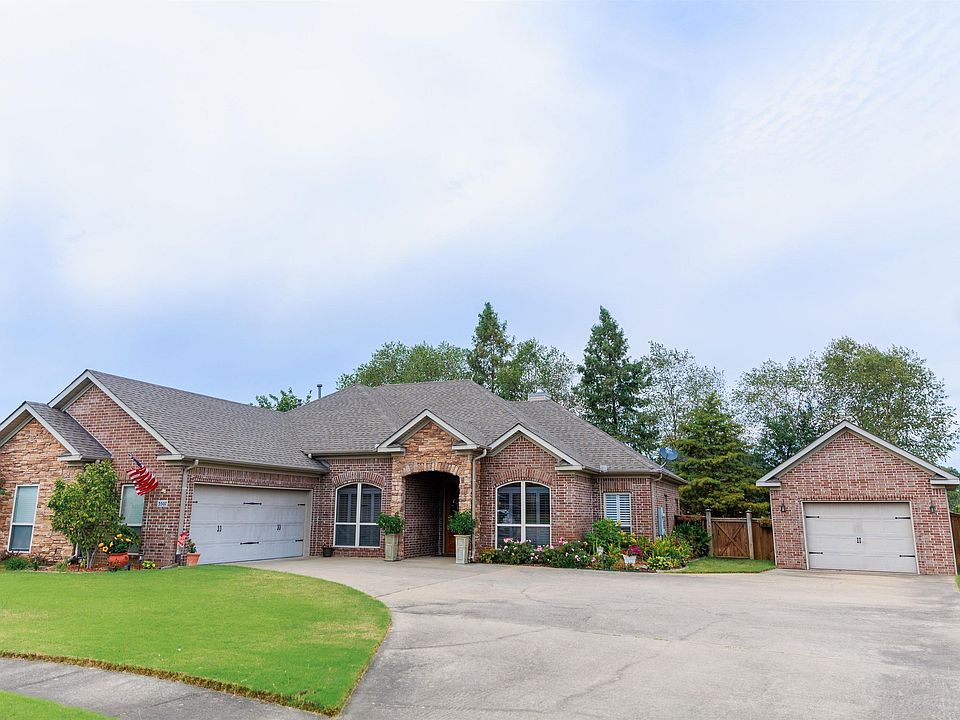 This prime neighborhood is charming and located in the heart of Benton/Bryant and home to this perfectly well kept and updated 3 Bed, 2 bath + office residence. With an AC unit that was replaced in 2022, a roof that was replaced in 2021, newly remodeled and updated kitchen in 2022 (cabinets, flooring, granite, appliances), and new flooring throughout it is like stepping into a brand new home. As you walk, you see a perfectly manicured front yard with beautiful flower beds and a built in sprinkler system. With a good sized 2 car garage, it also comes with an extra garage with plenty of room for a golf cart, side by side, or just a shop or gym. As you walk in the beautiful french doors, you will also see the lovely plantation shutters that are all throughout the home. With plenty of space in this home throughout the dining, living, and bar areas, there are endless possibilities. The Primary bedroom is apart from the guest bedrooms, with a new and updated bathroom (bath tub and shower) in 2019 with a wonderful walk in closet. In the back of the home, you have an extra sun room that makes for a perfect morning coffee and book or tv time. This is the perfect place to call home.