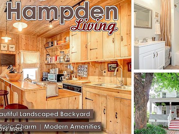 You'll fall in love with this charming Hampden detached home, full of historic charm & modern amenities! Enjoy a park-like setting w/ over-sized & landscaped front & back yards, front porch, rear patio, pavers and play area. Lovely original HW floors, built-ins, decorative fireplace, generous room sizes, spacious dining area & a custom rustic kitchen. 5 min. walk to light rail, shops & dining.
