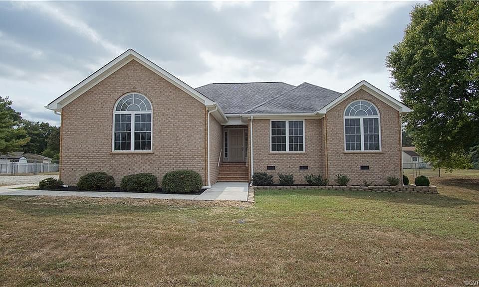 Al Brick custom ranch with water access to Lake Chesdin. 3 Bedroom, 2 bath with 2 car garage. Hardwood flooring throughout. Baths and utility room have tile floors. Semi-open living and kitchen space with bay window breakfast nook, dining area, and walkout screened porch. Vaulted ceiling great room with access to deck and fenced in rear yard. Large master bedroom with walk-in closet and bath. 2 car garage with opener then entry into utility/mud room. Large parking area exterior driveway with brick columns with lights. Optional Chesdin Manor HOA has access to Lake Chesdin boatramp 1 block from property and also stocked fishing pond in neighborhood.