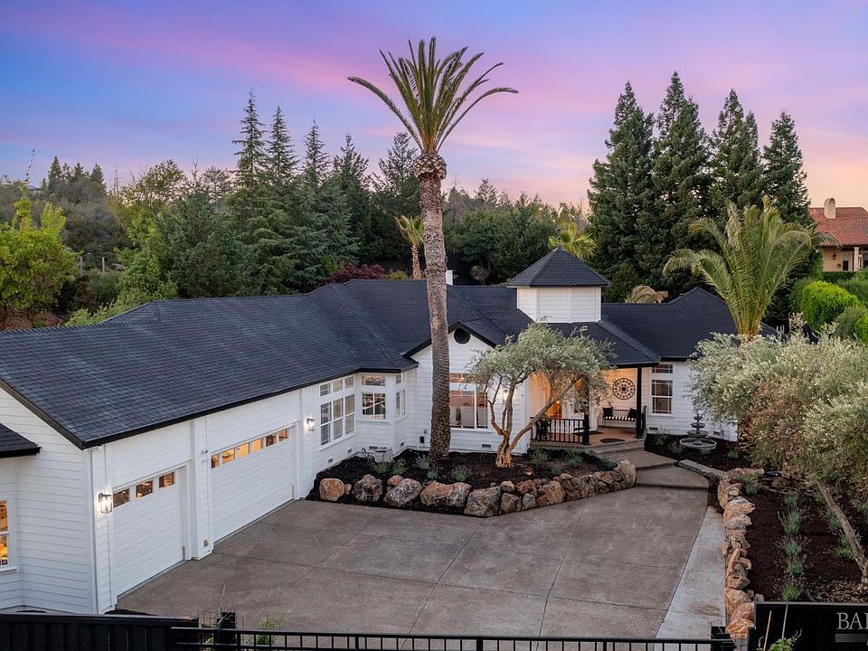 Gated, single level Fountaingrove stunner on nearly 3/4 of an acre. This 3100+ square foot home has been nearly 100% upgraded over time with refinished hardwood flooring, new carpet, interior and exterior paint, stainless steel appliances, designer lighting and much more. The open floorplan includes a kitchen/great room, formal living room, formal dining, a custom built-n bar area and a primary suite with an attached office that could function as a 4th bedroom. Exterior amenities include an enormous rear yard space with a large deck for entertaining, a firepit area, spa and multiple siting areas. Fresh landscaping in front and back including mature palm and olive trees, rock walls and walking paths. All completed with a finished garage featuring built-in storage cabinets with diamond plated doors, Bose surround sound, vinyl interlocking flooring and 3 built-in tool chests. Located on a quiet cul-de-sac with no through traffic.