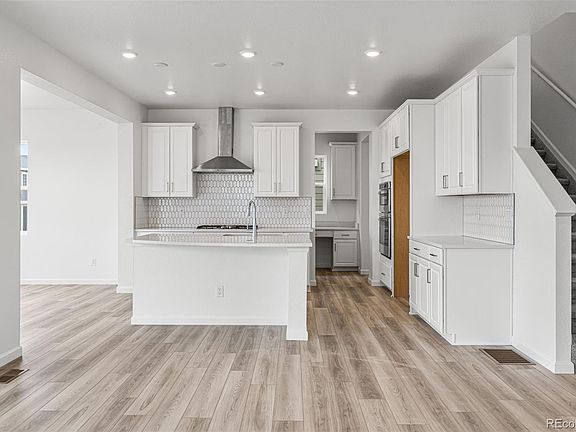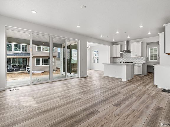 MLS#8210944 Ready Now! Welcome to the Granby at Aurora Highlands, a charming two-story home designed with growing households in mind. The open kitchen, dining, and great room provide a seamless space for family connection. Cooking enthusiasts will love the well-appointed kitchen with its eat-in island and spacious walk-in pantry. Thoughtful details like a mudroom off the garage and a main-floor bedroom with a full bath make daily living easier. Upstairs, the expansive primary suite offers two walk-in closets, accompanied by three additional bedrooms and a versatile loft. The home also includes a full unfinished basement, ready to meet your future needs. Structural options include: built in appliance package 1, bedroom 5 with bath 4, 9' full unfinished basement, ,shower in lieu of tub at bath 4, 8' x 12' sliding glass doors, primary bath configuration 3, and outdoor covered living.