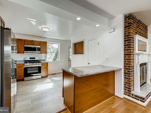 Adorable move-in ready 5BD/2BA Rancher in the desirable neighborhood of Joppa Grove. Drive up and park in the doublewide driveway and enter you forever home. Once inside you are drawn to the pristine hardwood floors that carry throughout the entire main floor and the stunning brick wood-burning fireplace flanked by a craftsman style mantel with a built-in mirror. The open concept living room gives you sightlines of the dining area and kitchen that boasts stainless steel appliances, granite counters, beautiful wood cabinetry, a large window above a stainless steel sink, and a spacious island perfect for serving family and friends. Just outside the kitchen door is a covered patio with views of the treelined yard. Still, on this floor, you have three generous sized bedrooms and a full bath with gorgeous tile and tile inlay. The lower level is finished and perfect for a den or playroom with plenty of storage, laundry, a full bath with a walk-in shower, and two additional rooms perfect for an office or extra bedrooms. From the lower level, there are two exits, one a sliding door leading you to a large patio and the generous green space just waiting to be transformed. This home has so much to offer any new homeowner including new windows and doors, new furnace, and newer water heater. Imagine all this and in close proximity to shopping, restaurants, and commuter routes.