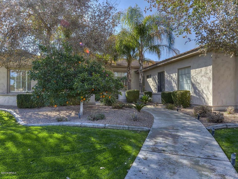 Meticulous 4,277 square foot home in the gated community of Arboleda. Over half an acre of lush green lawn, mature orange and grapefruit trees, and beautiful landscape surround this beautiful 4 bedroom and 3.5 bathroom home. Large gourmet kitchen with granite and all the amenities one can want, eating area within kitchen, formal dining and living room, family room w/fireplace, office, 2 pantries and file room, 2 covered patios lined with Saltillo tile and include electric retractable awnings, magnificent pool w/water feature, 4 car garage w/lots of storage. Huge back yard great for entertaining, having a catch, playing with the pets, or just relaxing in the hammock. Pride of ownership show throughout this home. Come see for yourself. Fine homes like this one do not last.