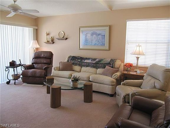 Extended living 2BR, 2BA, 2-car attached garage Capri Villa home. The popular Capri floor plan lives like a single family home offering 1680 sq. ft. under air! This nicely maintained home features updated A/C and hot water heater, newer carpet in bedroom and living area, tile in dining area and extended den area, some newer kitchen appliances, built-in entertainment center in great room, recently painted interior and exterior, and large screened lanai with relaxing water views. Village Walk is located in desirable north Naples and offers unbeatable amenities, and low association fees. The unique Town Center boast (3) community pools, fitness center, (6) Har Tru tennis courts, Bocce ball, on site restaurant with no annual minimum, library, real estate office, beauty salon, travel agency, on site manger and activities director, planned events, miles of bike and walking paths and more! Close to beautiful local area beaches, popular Mercato, fine dining, entertainment, shopping, and SW Regional Airport.