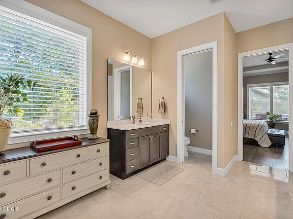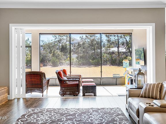 This property has sold! Discover similar listings by reaching out to us for an updated list of available properties that match your preferences. **FOUR LARGE BEDROOMS WITH BONUS/OFFICE SPACE** This custom Arthur Rutenberg home is located in the exclusive, gated community of The Preserve on The Bay, where 24-hour staffed security ensures privacy and peace of mind. Built in 2019 and impeccably maintained by its single, pet-free, non-smoking owner, this home feels practically brand new. The thoughtfully designed split floor plan offers both openness and privacy, with a spacious primary suite tucked away on one side, featuring a luxurious bathroom with a walk-in shower, dual vanities, and an enviable custom closet. The three additional large bedrooms are on the opposite side, with two sharing a bath and one enjoying its own private ensuite. A versatile bonus room provides the flexibility to create a home office, entertainment space, or playroom. The gourmet kitchen boasts a five-burner gas cooktop, quartz countertops, a large island, abundant cabinetry, and a vent hood. A separate laundry room with a sink and space for an extra fridge adds even more convenience. Natural light pours in through a stunning four-panel sliding glass door that opens to the screened-in travertine lanai, overlooking the expansive .66-acre backyard - lush, private, and surrounded by mature trees and protected green space. This home is as energy-efficient as it is beautiful, featuring paid-off solar panels that keep utility costs impressively low - the average electric bill is just $45 per month and, there is even a well for the irrigation system.Additional smart energy features include foamed insulation and a Rinnai tankless water heater. The three-car garage, complete with EV charging and overhead storage, rounds out this exceptional home. A rare opportunity to own in one of Panama City Beach's most sought-after communities - schedule your private tour today.