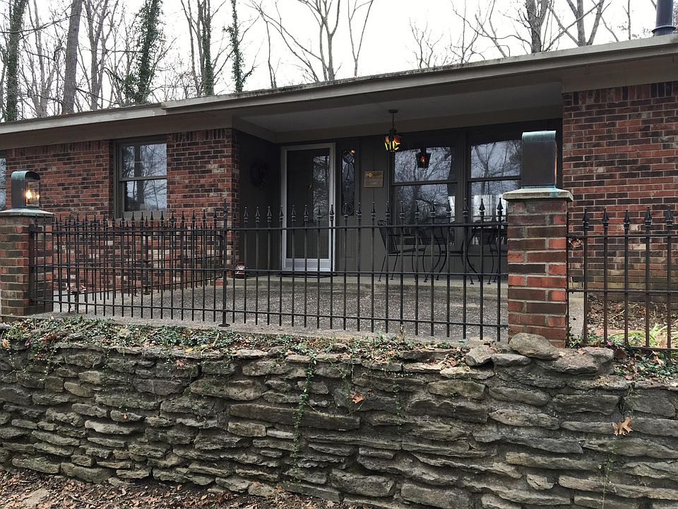 Back on Market! Contract fell through. Wonderful ranch nestled among mature trees in desirable Oldham County. This home has a huge family room with a wood burning fireplace with gas logs and a large country kitchen that can handle the largest gatherings you will surely want to plan! The outdoors features a front courtyard with ornamental iron fencing and the back has a covered patio that flows to a brick patio area. There is a huge back yard with a swing set that can remain. The bedrooms are nicely sized as well the 2 full baths. There is an attached garage with storage shelving. Easy access to I-71 and Oldham County Schools.