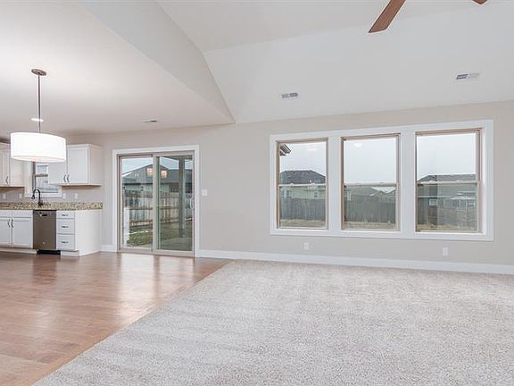ADORABLE, three bedroom, two bath home in Arbor Pointe! This open floor plan was built in 2017 with granite countertops, stainless appliances, white wood cabinets, and wood floors throughout kitchen. Carpet takes over from the living room through all three bedrooms. The large, fenced backyard is perfect for privacy, playing, and enjoying dinner on the covered patio. Freshly painted two car garage with shelving. Community pool is just up the street!Fresh paint and carpet cleaning throughout!