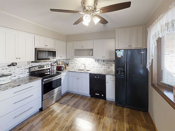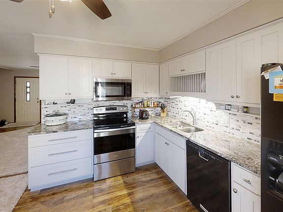 3 bedrooms, 2 baths, 2 car garage in mint condition. Home features all new kitchen with granite counter tops, stainless steal appliances, tiled back splash, beautiful new white cabinets, plus new floor covering in kitchen. Two new baths. Lovely new carpeting in large living with bow windows. New ceiling fans, refinished hardwood floors in bedrooms, walk-out to fenced back yard. FHA, VA low down payment possible. VACANT. Easy to show and quick possession.