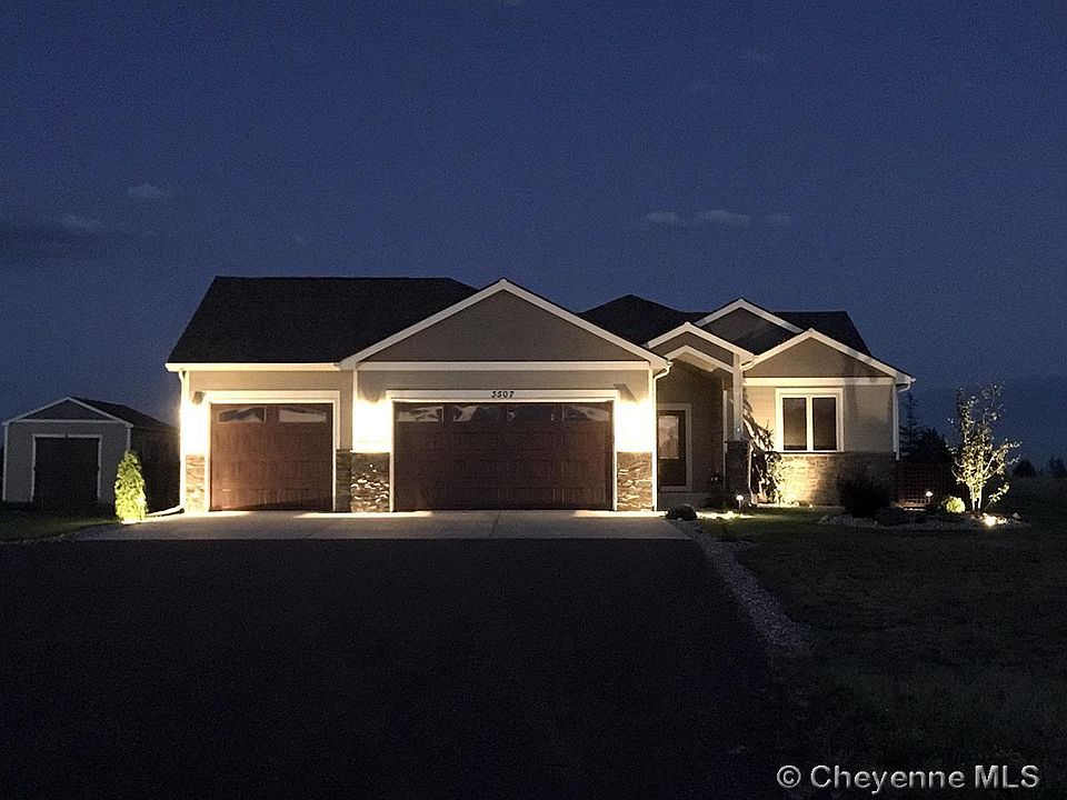 Stunning ranch style home in desirable HR Ranch. 5 Bed, 3 Bath, 3-car garage. Open plan with a gorgeous dream kitchen. Finished basement with wet bar. Home features include surround sound, covered patio w/ built-in gas grill and fire pit, A/C, water softener, tankless hot water heater, Central Vac system and a built-in humidifier. Amazing beauty and craftsmanship throughout this home.