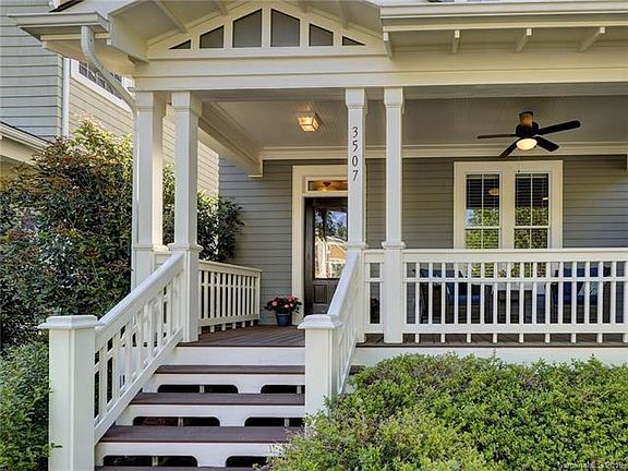 Immaculately maintained Cottage home within walking distance to community pool, trails, and much more. Features include classic detailing throughout, rocking chair front porch, extended Hardwood floors up and down, open floor plan with 42" cabs, granite, tile backsplash, stainless appliances, and island. Formal Dining Room or office, surround sound, large secondary bedrooms, oversized master, beautiful master bath with dual vanities, walk-in shower and garden tub. Fresh paint throughout, fenced backyard with private patio, and enlarged 2-car garage with pull down storage. Hard to find a home in this condition with these features in such a great location!