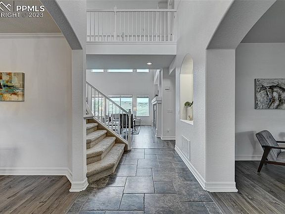 Incredible!! New Paint and New appliances! One of a kind location backing to Waverton Ranch w/beautiful views!! 5bed/5bath house in prestigious Soaring Eagle Estates in The Meadows, perfectly situated on an expansive lot that offers breathtaking panoramic views. As you enter the home, you are greeted by an open and inviting floor plan that flawlessly incorporates a foyer, a well-appointed living room, & a formal dining area. Each of the five bedrooms exudes its own distinct charm and several offer an en-suite bathroom, providing privacy and a personalized touch. The kitchen flows into a spacious great room with vaulted ceilings, creating a welcoming environment for gatherings and relaxation. One of the true gems of this home is the finished walk-out basement. It offers ample space with a entertainment area surround sound, a wet bar with two mounted TV’s plus a bar refrigerator. Addional area can be used for a home gym, game area, or a cozy retreat, the possibilities are endless. Outside, you'll be captivated by the generous lot size that creates a sense of seclusion and tranquility. Whether you're hosting a summer barbecue, cultivating a home garden, or simply enjoying a morning cup of coffee, the sprawling backyard is your personal oasis with additional room for play structure next to the in ground trampoline. Most importantly, the stunning views this property offers are truly second to none. From morning's first light to the setting sun, the captivating scenery is the perfect backdrop for your daily life. Tons of upgrades throughout! New water heater, newer AC, 2 furnaces, 2 AC units, 2 water heaters, updated primary bath, new flooring and more. Soaring Eagle Estates is a fantastic neighborhood to be in! The neighborhood has large lots, wide streets, mature landscaping. Great proximity to trails, parks and schools!