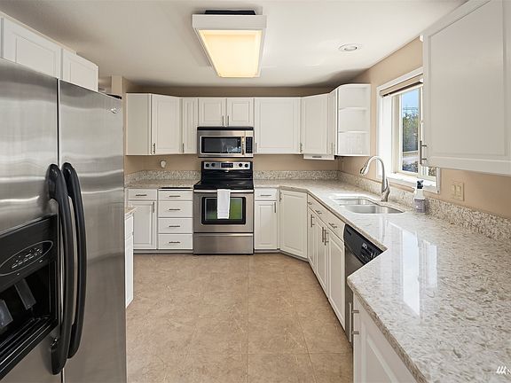 Don't miss the opportunity to come view this spacious 2 bed, 1.75 bath, 1228 sq. ft. condo conveniently located right off the West Seattle bridge. The brightly remodeled kitchen features quarts countertops, refinished cabinets, and stainless steel appliances. This large unit offers both a formal and informal dining space which could also double as an office space. Big master suite with private double closets and sizable bathroom. Cozy living room with fire place. Secure common garage has 1 parking spot and large storage closet. Enjoy territorial views of the city skyline. Amazing proximity to the Admiral District, Alki Beach, and California Ave. Great West Seattle Schools: Fairmount Park Elementary, Madison Middle, and West Seattle High