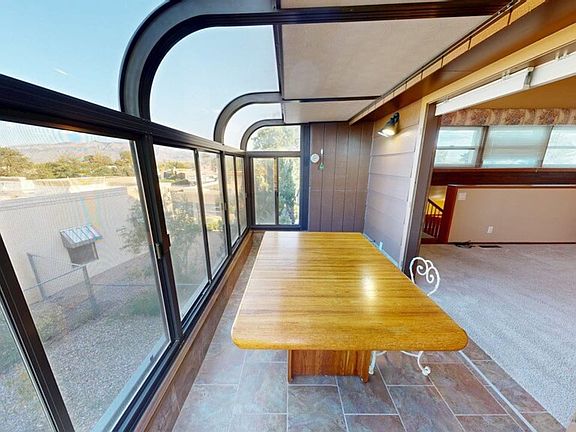 Step inside to a thoughtfully designed layout that includes a sunken living room with a cozy gas fireplace, open kitchen with attached dining room and a family room with vaulted ceilings, a pellet stove insert in the fireplace, and wet bar. Upstairs, you'll find the primary suite with an attached bath, attic access, and an attached sunroom with views of the Sandia Mountain and Rio Grande Valley. A perfect place to enjoy New Mexico sunrises and sunsets.