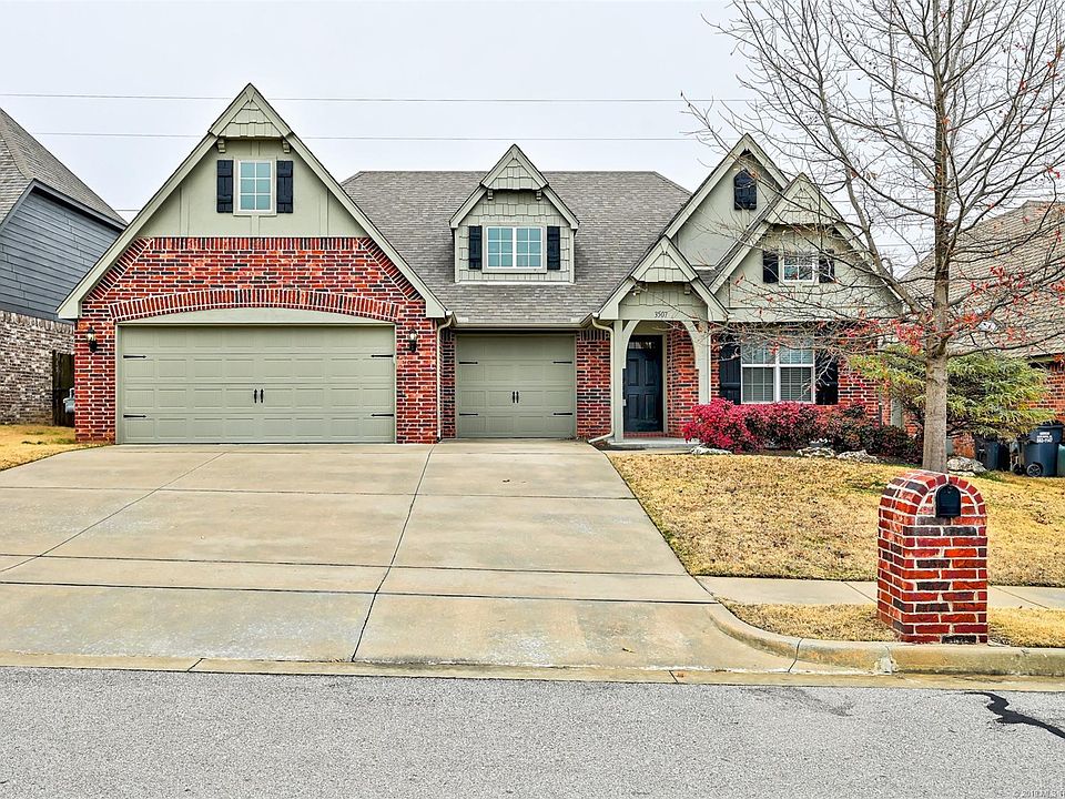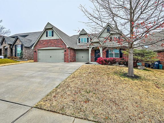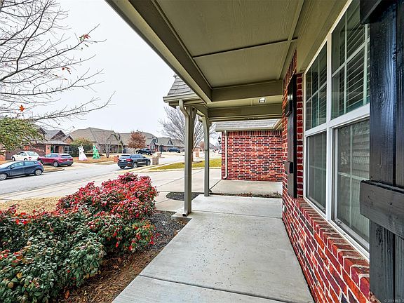 Jenks schools with quick access to HWY 75 & Tulsa. 3 bds + formal office space. Fresh paint throughout, beautiful new hardwood flooring in living and office areas. Covered patio backs to lovely greenbelt w/trail. Kitchen with SS appliances, jumbo pantry made for Costco shoppers! Granite counter tops all open to living. Large stand up shower in master, double sinks. Covered patio w/extra concrete seating area partially enclosed. Community park, splash pad, and trails.
