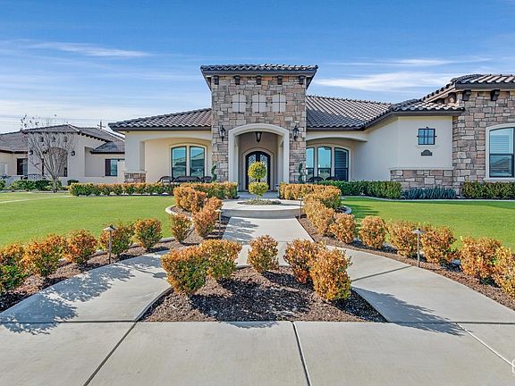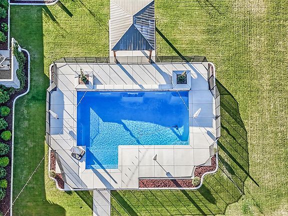 Discover unparalleled luxury in this stunning one-owner home located in the prestigious gated community of Manorwood Estates. This custom design boasts an OWNED 37-panel solar system generating energy credits, two separate 2-car garages pre-wired for EV outlets and mini-splits (one insulated), and 10-foot ceilings throughout. Designed with top-tier materials, it features quartz countertops, oil-rubbed bronze fixtures, LVP flooring in common areas, plush carpet in bedrooms, and a stone gas fireplace with a 5-speaker surround sound system in the living area. A private guest wing, plantation shutters, electric rolling shades, and a central vacuum system elevate comfort and convenience. The backyard is an entertainer's paradise with a covered patio equiped with an elegant fireplace, sparkling pool, gazebo for an outdoor kitchen, RV parking, a large shed, and a sprawling grass area. This meticulously maintained home offers unmatched style and efficiencyschedule your private showing today!