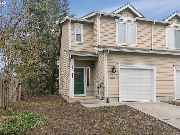 Welcome to this serene 3-bedroom, 2.5-bathroom townhouse, nestled on a private flag lot in the heart of St. Helens. Surrounded by a wooded backdrop and the soothing flow of a nearby stream, this home offers a peaceful retreat from the everyday hustle. Step inside to discover an easy-flow floor plan and effortless living. The upper level showcases vaulted ceilings, creating an airy and spacious ambiance, while the primary suite features an ensuite bath and walk-in closet for ultimate comfort. Venture outside to your private patio, where you can unwind amongst the gentle sounds of nature. An attached garage offers ample space for a vehicle and storing your outdoor toys. Updates include a new roof (2022) and a new water heater (2021). Conveniently located just minutes from local amenities, schools, and recreational adventures, this townhouse delivers an ideal balance of seclusion and accessibility.