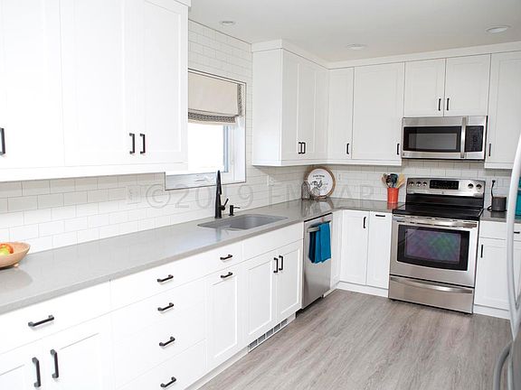 This 2176 sq ft 4 bedroom, 2 bath, .199 acres in N Fargo is incredible! From the seamless steel siding, to the luxury plank flooring, the custom blinds/shades, the AMAZING kitchen & the new carpet, every inch of this gorgeous home has been remodeled and improved! There is in-floor heat in the mudroom/foyer. The remodeled kitchen includes soft close cabs, SS appliance & quartz counters & sink. The newly painted deck is off the dining room & there is a large picture window in the living room. Downstairs, a warm, bright family room, nice sized bedrooms, remodeled full bath, & finished laundry room, with W/D and counter and sink, complete this home. The fenced in backyard is professionally landscaped. Longfellow School District=National Blue Ribbon Winner. .4 mi from Trollwood Park!