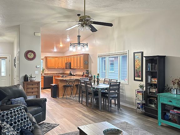 Open and bright. This one level West Ridge Condo has 1,344 sq. ft. of living space. With two primary suites, this one will go fast! One of the suites has an office that can be converted to a closet, if needed. The open floor plan has a large living room, dining area, and a spacious kitchen. The owner replaced all appliances in 2023 with the custom slate appliances, replaced all of the flooring and added fresh paint. There is plenty of room for more than one cook in the kitchen. Just out the back door is a beautiful private patio for entertaining that leads to an oversized two car garage. Additional parking out back. Great skyline location, next door to an open park.