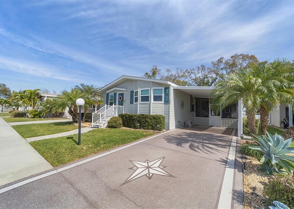 Rarely available! As a land owned and 55 and older community, North River Estates is highly desired. This is a 2010, Jacobsen Home with 2 bedrooms and 2 bathrooms. Pride in ownership is very apparent. Great curb appeal with a painted driveway, and mature landscaping. Open floorplan with cathedral ceilings and crown molding. Solid surface countertops, stainless steel sink, and well designed kitchen with large windows to allow the natural light to shine in. Indoor laundry room and the washer and dryer are being sold with the house. Some furnishings are also staying. Nice and relaxing lanai. Low HOA of 125.00 per month gives you access to the clubhouse, the fitness room, and the large heated pool. Best of all it includes your lawn being mowed, edged and trimmed. North River Estates is a small community where everyone knows each other and there is so much to do. Pot luck suppers, cards, poker, pool table, and many holiday events await you. Trade in that snow shovel for some sun tan lotion and enjoy the Florida lifestyle! Close to shopping, restaurants, airport, and the sunny beaches.