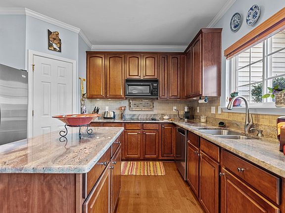 Stylishy updated and well maintained townhome in ultra desirable Wakefield.Stunning hardwood floors on first (oak) and second ( bamboo) floor, granite kitchen countertops, stainless appliances with refrigerator included,new Anderson sliding glass door opens to patio, all ceiling fans updated, Water Heater replaced Feb 2024, AC repaced 2017, Dishwasher 2019, epoxy coating professionally installed in garage and front entry 2022. Super convenient minutes to Shopping, restaurants and interstates. Short walk to Pool, clubhouse, pickel ball/ tennis courts and golf course.