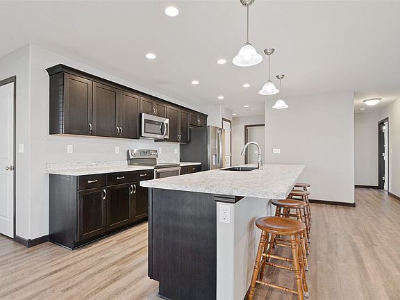 Beautifully positioned within the Bellwood Meadow Estates community on the SW side of Cedar Rapids is this like-new, zero entry condominium that features all the benefits of new construction without the new construction price. With two bedrooms, two baths, tastefully selected finishes, and a thoughtfully designed floor plan, this condo feels more like a single-family home. Both the 36” front and garage entry doors are zero entry, meaning there are absolutely no steps to get into this home; this along with the 36” doorways inside, open floor plan, main floor laundry, and easily accessible front porch make this condominium perfect for achieving one floor living and ease of accessibility. With that said, there is a full, unfinished lower level that is already studded out and stubbed in for a full bath if more space is desired. The modified sliding glass door that provides walk-out access at the halfway point in the stairwell along with the many other windows throughout the main living spaces, allow for ample natural light to cascade into the generously sized living spaces. Highly functional galley kitchen with a huge island and breakfast bar, plenty of storage, stainless steel appliances, and luxury vinyl plank flooring. Bedrooms are located privately down a U-shaped hallway with the laundry room at the center. There’s plenty of room for a dining set and extra room in the sunroom for a family room, office, den or library. Front and back patios along with a well-connected sidewalk system in this community offer opportunities to enjoy the outdoors as well. The custom wood blinds are included, as are all the kitchen appliances. Located close to just about everything in terms of shopping, dining, and interstate access. With this much to offer at this price, this one won’t last long!