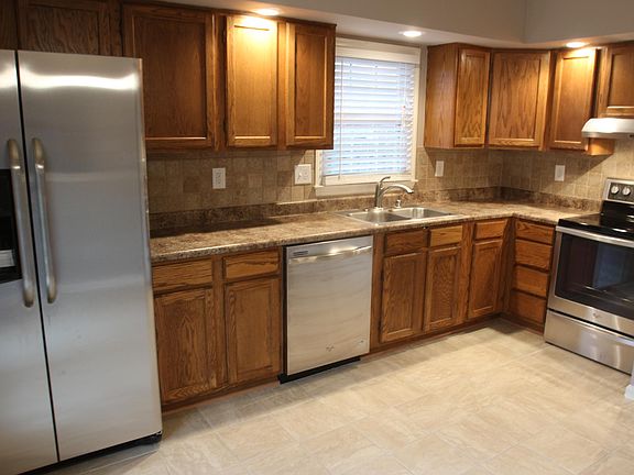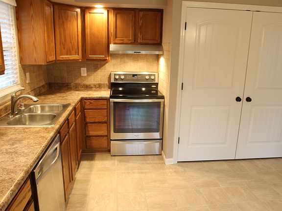 This home has it all! Completely Re-Done - Extras include: new leaded glass front door, new tilt-out energy efficient windows, new ceramic tile floors (in two baths, entry, kitchen and laundry), new stainless steel appliances, new faucets, new carpet, new paint, new lighting, new countertops, new backsplash, new two inch blinds, new lighting, new double french style exterior doors, new cheyenne style interior doors with oil rubbed bronze hardware, new electrical outlets and switches throughout, wood burning fireplace, window seat, covered patio, digital thermostat, central air, linen closet, brick exterior, 2 bedrooms, 1.5 baths, ceiling fan, neutral decor, one car garage with new opener and two remote controls, large living room with vaulted ceilings, washer and dryer hookups, new landscaping, privacy fenced yard, covered patio, located in a cul-de-sac on the south side of Lexington. Owner pays for trash collection