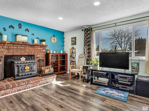 Wonderful family home! This home features a spacious living room with wood burning stove and beautifully remodeled kitchen and bathrooms! The kitchen boasts gorgeous custom alder wood cabinets, custom countertops and newer appliances! Refrigerator stays! Beautiful LVP flooring throughout! Both bathrooms have been upgraded with new vanities and more! New windows and central A/C! Exterior painted and storage shed to match! Large backyard is perfect for entertaining and feature amazing mountain views!, Refrigerator stays! Room in back for RV parking – total width: 9’ 10”. IMPROVEMENTS/UPGRADES COMPLETED INCLUDE: - Kitchen remodeled with beautiful custom alder wood cabinets and new countertops with alder wood trim (approx. 2018), new Frigidaire stainless steel microwave (approx.. 2018), new stainless steel farmhouse kitchen sink, faucet and Moen garbage disposal (12/22), new LG stainless steel dishwasher (5/21), new Frigidaire stainless steel refrigerator (approx.. 2012), new LVP flooring (2018), wall opened up to living room (2016), added recessed lighting in both kitchen and living room (2023); - Primary bathroom updated with new vanity, sink, faucet, light fixture and LVP flooring and hall bathroom updated with new vanity, sink, faucet and flooring (6/20); primary bathroom toilet replaced: 10/21; - New LVP flooring by NuCore, 100% waterproof, anti-microbial, scratch & stain resistant with lifetime warranty (installed in living room, kitchen, dining room, bathrooms, laundry room/mud room, entryway and hallway): 8/18; - New double-pane, vinyl frame, Low-E windows: 6/17; - New central A/C installed: approx. 2011; - Exterior home painted: 2016; and storage shed painted to match: approx.. 2019; - Back patio, sprinklers and grass put in backyard: 2016; - New water heater: approx. 2012; - Living room features a beautiful wood burning stove by The Earth Stove and custom made shelving.