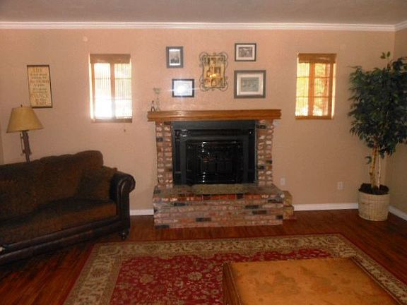 Wonderful country setting with mountain and lake views. This home has an open floor plan with wide hallways and doors and vaulted ceilings and a 3 car garage.1.37 ACRE W/2ND LOT zoned for horses. this 3 bedroom 1.75 bath has had many recent upgrades. Beautiful kitchen with granite counters and pull out drawers,. double ovens,, dishwasher. New roof last year, hot water heater is 2 yrs old. Lovely laminate flooring, living room has attractive ceramic pellet stove, the den french doors to covered patio. Master bedroom has doors to the patio and jacuzzi, a walk-in closet and a delightful upgraded bathroom with walk-in shower. Ceiling fans throughout, 2nd and 3rd bedrooms have shelving in the closets. Second bathroom has new granite counter top and tub/shower combo. There is also a large sun porch/deck off the dining room. Included in the sale are all the appliances including frig, hot tub , lg safe in garage, master bedroom set, and desk in 2nd bedroom, propane tank. Easy care landscaping. MAN's GARAGE has an air compressor and work bench and evap cooler!! A beautiful quality home.