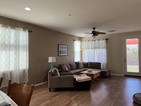 Stunning mountain view. Well-kept home in the Palm Springs Four Seasons, an active adult community for residents 55 and over. This outstanding home was freshly painted both interior and exterior with designer colors. Recent upgrades include new GE stove, dishwasher, refrigerator. Washer, dryer included in sale. Tile and new vinyl floors in living room, family room and both bedrooms. Incredible mountain view from a beautiful back garden that is big enough for a pool. This home has a spacious open plan, lots of kitchen cabinets, pantry, spacious owner's suite, laundry room with sink, ceiling fans. A large rear patio with pergola, and tastefully designed desert landscaping greets you from the street. Four Seasons residents enjoy The Lodge, a state-of-the-art fitness center, library, community rooms, 3 pools, 2 spas, tennis and pickle ball courts plus many other amenities and several clubs.