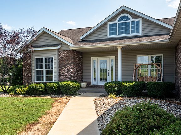 Equestrian property in highly desired Monroe County, Illinois! Take in the pastoral views from this beautiful atrium ranch on over 6 acres. As you enter the spacious open-concept living, dining and kitchen you will be delighted by the gorgeous hard wood floors and vaulted ceilings with sky light. This newly updated kitchen has beautiful painted cabinetry, large eat-at island all topped off by luxurious granite countertops. Master suite has fresh carpet and a completely updated bathroom. A gorgeous custom walk in shower, tons of storage in the double sink vanity with beautiful tops and painted cabinetry are sure to make getting ready a pleasure. The lower level has a spacious family room with the second fireplace, kitchen area for quick snacks and the 4th bedroom and full bath Walk out to the in ground pool with it's own cabana/garage and covered patio. This property has a 140x60 horse barn with inside riding arena, 3 stables, tack room, electric fencing. 14 month home warranty offered
