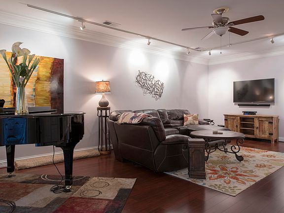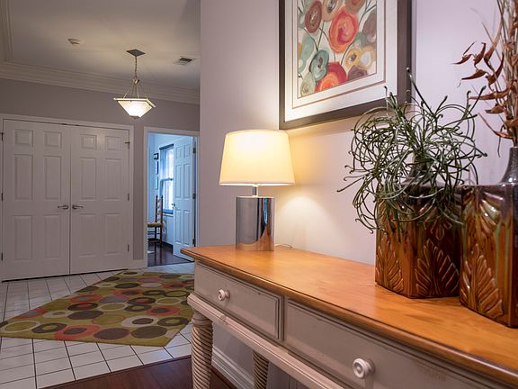 Beautiful first floor condo with attached one car garage! Lovely foyer with tile floor and rich crown molding welcomes you to this spacious home. French doors lead to the cozy den with fireplace and built-ins. The den is open to a remodeled kitchen with cabinets galore. New stainless appliances, professionally restored cabinets, new countertops, new sink, and new faucet. From the kitchen you can access the grand living room with rich crown molding, a 2nd fireplace and built-ins with storage, with gorgeous flowing Brazilian cherry flooring (also in hall, laundry). The master bedroom is adjacent to the living room with tray ceiling and bay window, large walk-in closet, and spa bathroom with large jetted corner tub & stand-up shower. The second bedroom and second full bath is perfectly