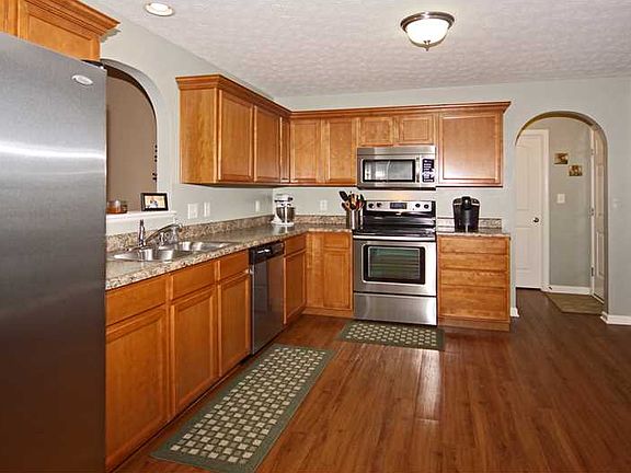 Lots of upgrades in this 3 bedroom 2 bath home. Vaulted ceiling in Master Bedroom. Master bath has double sinks, separate tub and shower. Vaulted Great Room and Dining Room. Arched interior doorways. Upgraded vinyl flooring, upgraded cabinets and 3rd car garage. All bedrooms have walk in closets. Screened in porch. All appliances stay with home. Fresh paint in kitchen and porch. Must see home!
