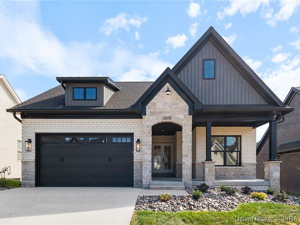 The ARHAUS floor plan is making its debut at The Grove with some elevated high end features. The timeless BRICK and STONE exterior is the perfect blend of LUXE and LONGEVITY. Step inside this 4 bed, 3 bath ENGLISH COTTAGE MASTERPIECE, and be captivated by the 15ft VAULTED CEILINGS, Fireplace, oversized windows, arched doorways and an OPEN FLOOR PLAN that defines luxury living. The CHEF'S KITCHEN boasts a large Custom Pantry, Cabinets with Bespoke Lighting and ceiling detail, QUARTZ WATERFALL countertops, a farmhouse sink, stainless appliances, and an OVERSIZED ISLAND. Luxury extends to the Master Suite, featuring a BARN DOOR, custom trim detail, vaulted ceilings, custom tile, free standing tub, dual vanities, and a custom WALK-IN closet. The first floor is perfectly curated with a spacious laundry and a MUDROOM featuring BUILT-IN CUBBIES for easy organization. Downstairs you will find an FINISHED BASEMENT with plenty of space to entertain! Outside you will enjoy sitting on the COVERED DECK! THE GROVE is conveniently located in the heart of NEW ALBANY minutes to the HIGHWAY 265 and DOWNTOWN BRIDGES, dining, entertainment, shopping and more! Estimated completion November 2024