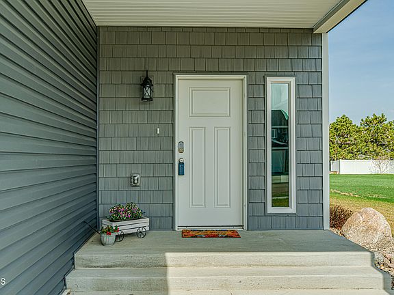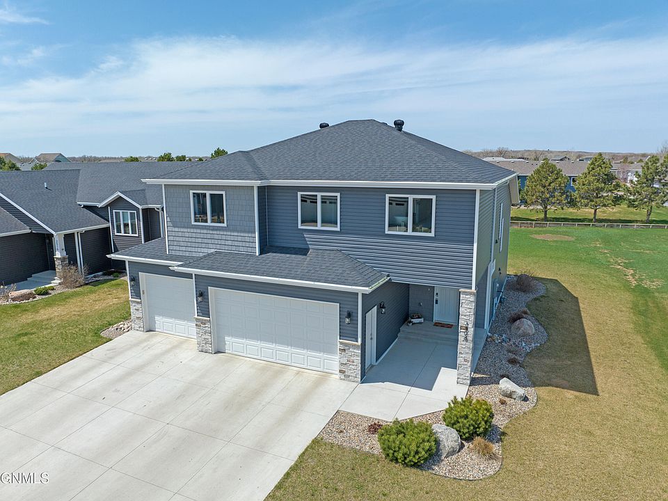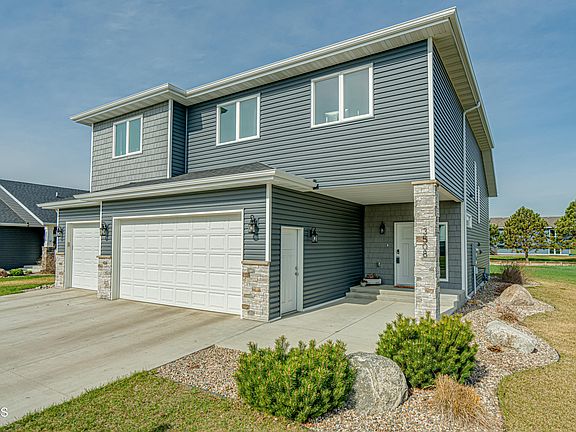The large 3-stall garage is finished and heated with water and a floor drain – plus a cubby closet with for additional storage! The beautiful yard has a sprinkler system & garden area (there used to be a trampoline and the sellers have planted new grass in this spot!). The house is wired for surround sound on the main floor and in the master suite and a security system was installed by the builder through Caves but the sellers never had it activated.