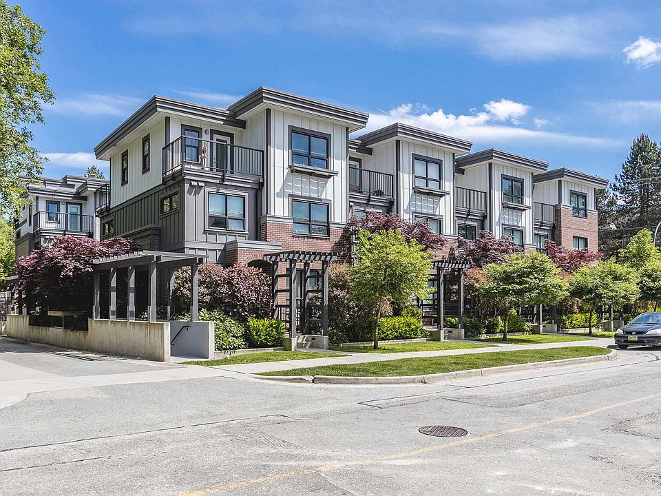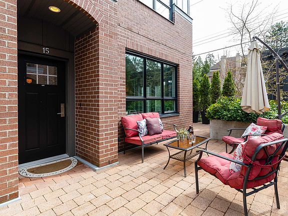 Premium SW Corner brownstone townhome at 'Parkgate'. Built in 2015, this 3 bed 2.5 bath townhome offers 1234sf of interior living space w/ quality finishings throughout. Let the light shine in! The massively bright and airy space offers over-height 9' ceiling, windows all around and loads of outdoor entertaining space. One of only two SW corner homes in this boutique 16 home community. Air conditioning included! The main living area offers a designer kitchen with gas range and powder room for guests. Up, find two large bedrooms for your WFH space or kids and a full bathroom. On the top level find the Primary Suite with spa-like bathroom, large walk in closet and private patio. 2 parking and 1 large locker.