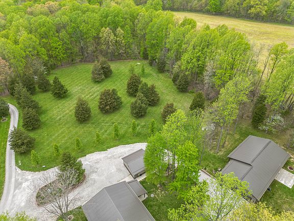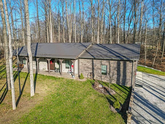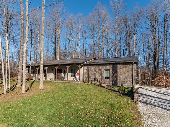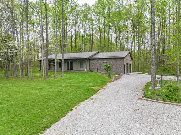 Turn Key! MUST SEE! Homes like this one do not get listed often. Introducing a beautiful 3 bedroom, 2 bath ranch home that seamlessly blends comfort, beauty and low maintenance. This all brick house features a metal roof, an inviting covered front porch and comes with the added bonus of 3 exterior pole barns. The largest exterior building is a 40X52 fully finished pole barn, fully insulated, heated and cooled with a full bathroom and partial kitchen area. This barn also has extra tall garage doors that can easily house an RV (or 2). This property also has 2 other pole barns each 24X24. Inside the home it has all of the modern amenities including fiber internet newer kitchen appliances and brand new 40gal water heater ensuring efficiency and style. The crawl space is taller than most, is insulated with a sump pump and a perimeter drain surrounding the home. The crawl is dry & clean enough to use for storage. All of this is situated on 10 acres, the majority of which is wooded, this home provides seclusion and beautiful country living. Hunters of deer and turkey will be overjoyed. It's not just a home, it's a haven for those seeking privacy and the tranquility of nature. Back on the market at no fault of the sellers.