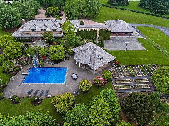 This luxury 5-star resort style home is your private paradise! This light, airy, serene home with expansive windows has a gourmet kitchen, huge walk-in closet, home office, and theater room. Take a dip in the hot tub & beautiful pool with a built-in slide. Enjoy a basketball game after barbecuing on your patio, sit and relax by the koi pond, or unleash your creative power in your metal shop. The separate guest house and pool house provide an estimated extra 1000 square footage each.
