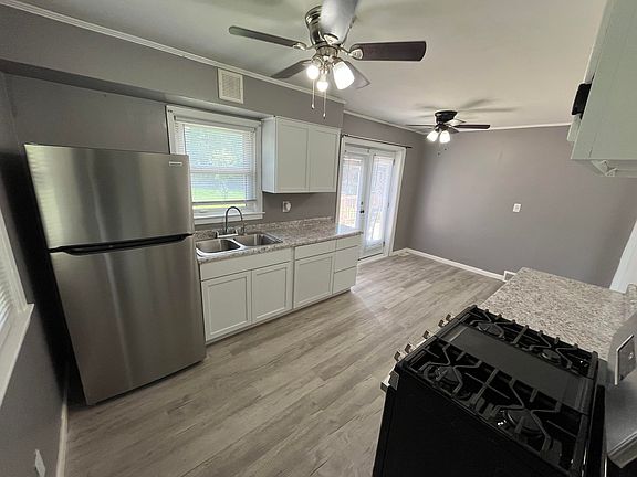 3BR, 2 bath home with hardwood flooring throughout. Also includes a stove, fridge, central AC, W/D hookups, ceiling fans, a basement, a fenced-in yard, a carport, and a garage. Updated kitchen.