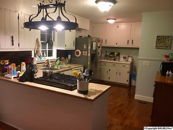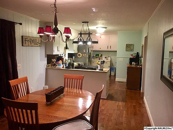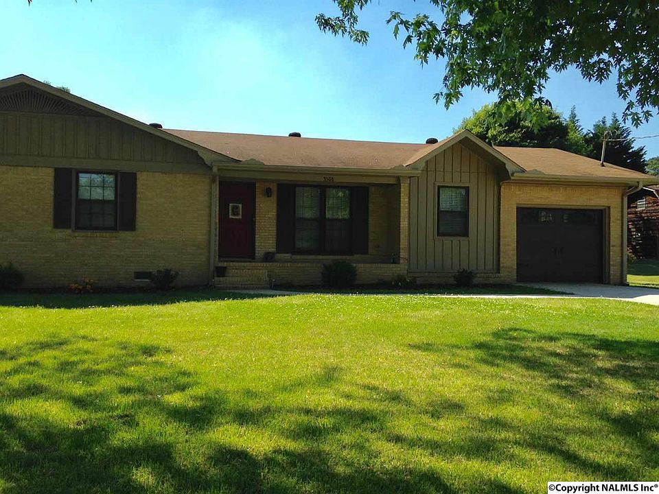 Great Established Neighborhood in Guntersville City. 3bd, 2bth Brick home. Nice family room with gas fireplace, Large Dining room off the Kitchen. Nice level yard with covered patio and fenced Yard. Home has beautiful Hardwood throughout. Attached one car garage with new carriage door and New Metal roof (2017)