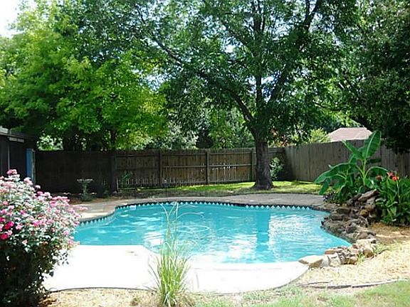 What a rare find! Large private corner lot with tons of trees with a sparkling gunite pool & rock waterfall, covd deck area, lots of grassy area, & an immaculate 1 story with 2 living areas. Recent paint, carpet, roof, range, HVAC,g-door, dw, & some fencing! The back yard is an oasis of privacy & plant life. The deck has wisteria that blooms in the spring. Priced to go fast! Marcus High School! New on market 7-16.