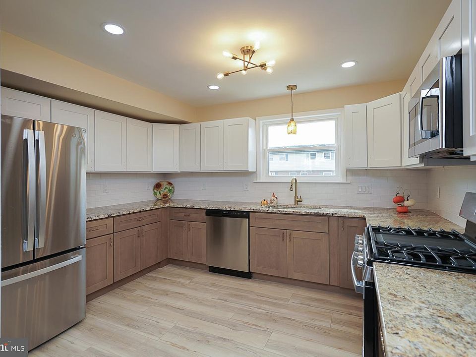 Don't miss this updated 3 Bedroom Row in Morrell Park! Updated from top to bottom, this home offers luxury and convenience with trending finishes and design. The kitchen features brand new cabinets, granite counters with tile backsplash, and stainless appliances. Fresh paint and refinished hardwood floors throughout the main and upper level. The full bathroom on the upper level has been completely remodeled, and a new full bathroom was added on the lower, basement level. Many upgrades include: new HVAC system including central air, new plumbing, and new roof sealant. The finished basement offers additional living space, along with a new laundry area, and access to the garage parking. The rear yard is fully fenced for Fiddo and kiddos. Excellent location nestled between NE Philadelphia and Bucks County.