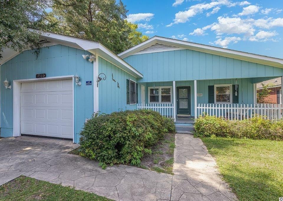 Welcome to "Be Right Back" ! Located just blocks from the ocean, this delightful 3 bed 2 bath beach cottage is being sold furnished and boasts a private inground pool and features your whole family will love ! Tastefully furnished and decorated , this charming home has been updated with high grade vinyl flooring throughout in 2019, a new HVAC in 2015 , new hot water heater in 2012 and the pool was resurfaced in 2016. Open floor plan includes a spacious living room adjacent to the large fully equipped eat in kitchen with tile backsplash, abundant cabinet and counter space and dining table with seating for six. The master suite has a bath with vanity and ample closet space and there are two additional nice sized bedrooms and a second bath with vanity and tub/shower. The home also has a separate laundry room with washer and dryer , ceiling fans in all three bedrooms, the kitchen and Carolina Room and a one car garage. The expansive Carolina room is enhanced by a profusion of windows so you can relax while watching your children play in the pool and there is a built in storage area to hold beach toys and chairs. Outside, the fenced backyard offers a private oasis for you and your guests to enjoy the inground pool and the pool is surrounded by wood and concrete decks to allow for plenty of space for grilling, dining and sunbathing. The home also has an extended front porch with swing where you can curl up with your favorite book or enjoy your morning coffee while listening to the ocean. Located in a quiet neighborhood in the Windy Hill section of North Myrtle Beach you are only minutes from Barefoot Landing with fantastic shopping, dining and entertainment options and just short drive to Broadway at the Beach, Tanger outlets and the Myrtle Beach Boardwalk. Whether you are searching for a primary home , your dream beach retreat or an investment property, do not miss this wonderful opportunity! Make an appointment to view this lovely home today!