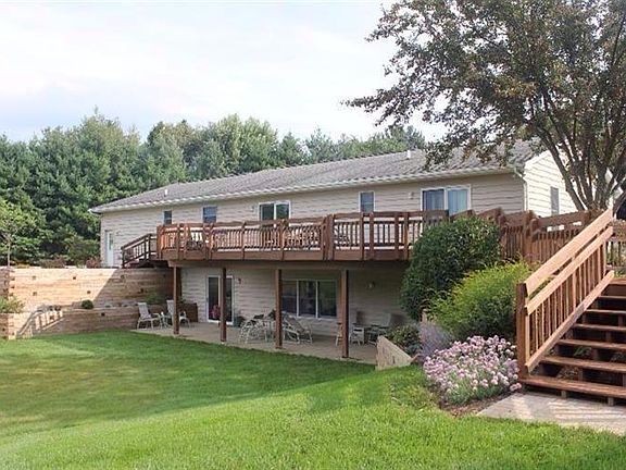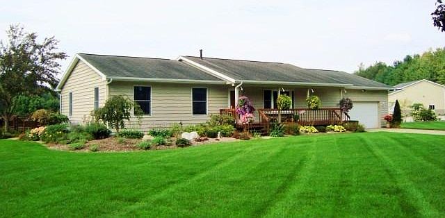 ISOLATED SERENITY! Four bedrooms, 3 baths, bonus office space & pole barn on a professionally manicured plush green 8.5 acres! Kitchen features custom soft close cabinets, granite counter-tops, island with built in stove top, double built in ovens and high end appliances. Newly refinished bathrooms. Updated light fixtures through out the house inside and out. You'll find new engineered wood floors in the finished laundry room, kitchen and living room areas, bay window along with vaulted ceilings and beautiful wood beam. Bedrooms have new carpeting, solid wood doors, and fresh paint throughout. Additional rec room, wet bar, bedrooms, storage and remodeled full bath can all be found in the walk out basement. Outside you will find a finished 40x60 (plus 24x40 add on) pole barn with overhead door, concrete flooring, astro turf, basketball hoop complete with gas heat, electric and separate well. Property bonuses include your own orchard with over 40 apple, cherry and peach trees, gardens, a batting cage and baseball diamond all on a newly landscaped private setting. So much more... great private setting and an absolute must see.