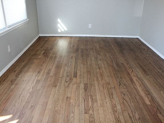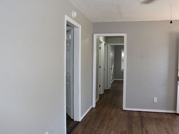 Freshly Painted Refinished Hardwood floors throughout Big closets Ceiling fans in each room Big kitchen New lighting New counter tops 5 burner gas range Refrigerator New flooring Garbage disposal New blinds in each room Updated Bathroom New vanity New Mirror 1 car garage - NOW WITH AN OPENER!