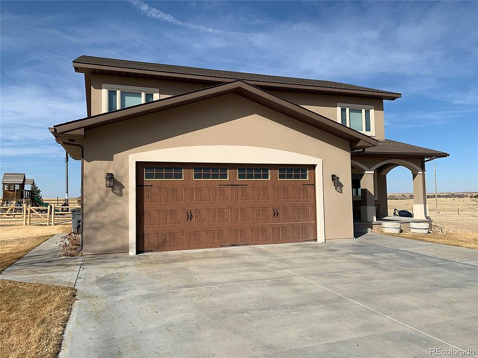 This beautiful two story stucco home has so much to offer. 6 Bedrooms and 4 Baths with a open floor plan. Located just approx. 3 miles west of Wray. Beautiful location with gorgeous views, well and septic, fenced yard and attached 2 car garage. This home was built in 2010 and has great features such as the stair case is very wide, finished basement, walk-out basement, Sliding glass doors onto a concrete patio and deck. There is a play ground with play house and a chicken coop off to the side, nice yard with underground sprinklers. This stucco home has been very well maintained and is move in ready. I can't say enough about this home. Make your appt today!
