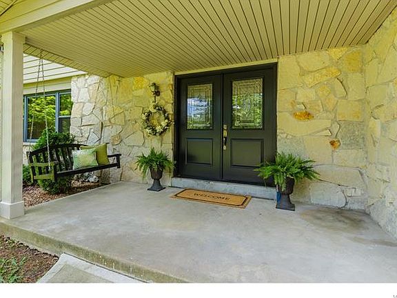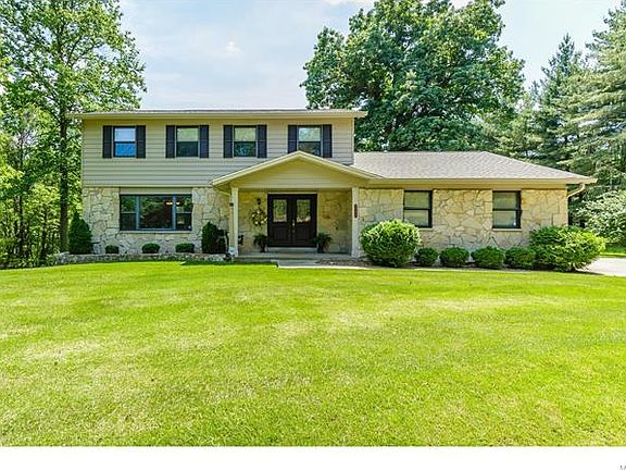 This is a 1.06 acre lot in sought after "The Bluffs" subdivision on a gorgeous private lot, hard find in St Charles and close to everything!!! When the trees have lost their leaves you can see all the way to the River Valley. The home is loaded with updates. Beautiful newer leaded double front door, Roof 2015, newer gutters and garage door. Kitchen remodeled in 2014 with 42 in cabinets with soft close drawers, center island breakfast bar. Refrigerator and one year old washer/dryer also remain. Harwood flooring through out Kitchen, breakfast room, powder room. The living room and entry foyer both have wood flooring as well . Main floor laundry, family room with stone fireplace and French doors that lead out to deck ,and your 32x16 pool , swing set/play area, and shed in a huge backyard and backing to trees!!! The lower level is finished with a 26x18 rec room and half bath and cedar closet. Outside shed and garage freezer remain. Don't miss the opportunity to be the lucky new owner!!