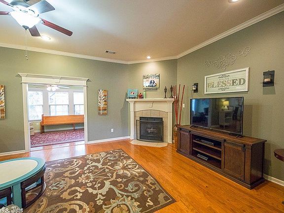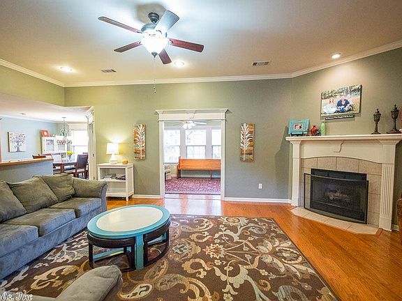 Beautiful 4 bedroom, 2 bath home in Heritage Farm! The Large Bonus Room or 2nd living area is perfect for a media room, playroom, office or 5th bedroom! Open kitchen w/ granite tiled counters, pantry, breakfast bar & spacious dining area. Main living w/ hardwoods & gas fireplace. Master apart w/ 2 walk-in closets, jetted tub, walk-in shower & double vanity. Large fenced backyard w/ oversized patio. Side loading garage w/ storm shelter! Area amenities: swimming pool, playground & pavilion. Bryant schools!